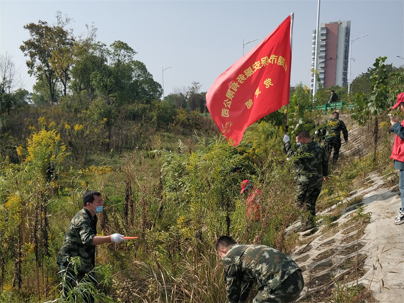 2022年11月3日,市保安公司获悉,一个时期以来,结对共建单位银湖社区境内,外来植物“一枝黄花”疯狂扩展蔓延,对生态系统构成危害。